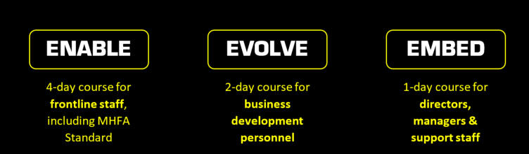 Each course comprises of a version of MENTAL HEALTH FIRST AID, plus content written